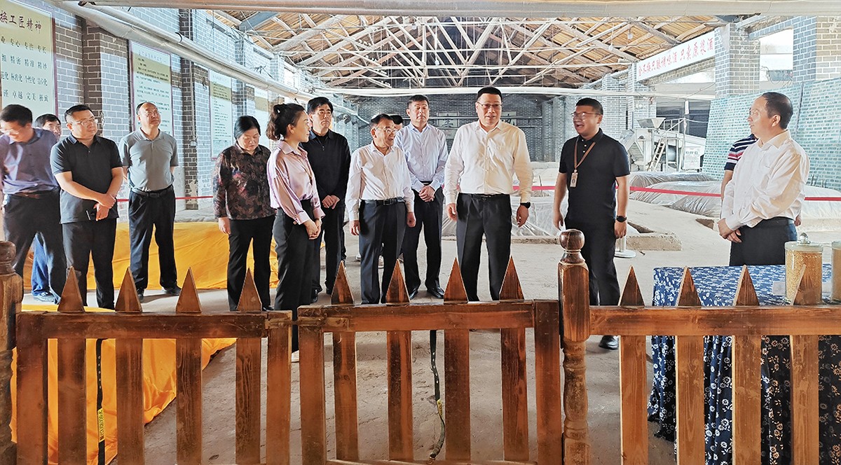 湯涌主席一行查看了金不換文化展示區(qū)、藏酒區(qū)、銷售展廳、明清窖池群和亳酒城市會客廳。金不換白酒集團黨委書記、總裁支濤介紹了近階段企業(yè)生產、經營情況和未來發(fā)展規(guī)劃。